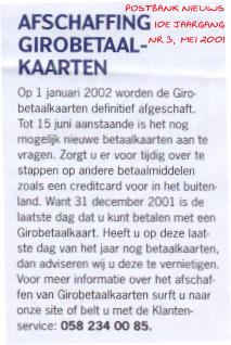 AFSCHAFFING GIROBETAALKAARTEN PER 1 JANUARI 2002